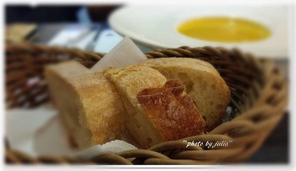 法國麵包給我的印象是口感乾硬,端上桌的法國麵包應證了這點。不過,喜歡的人卻是越嚼越有味。