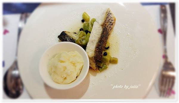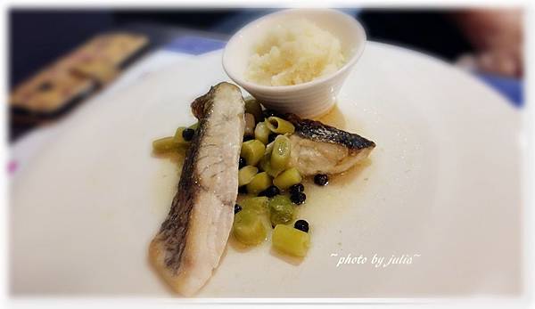 蒜苗杜松子鱸魚,鹽味十足的魚片沒有經過太多的加工,保留鮮魚原味。