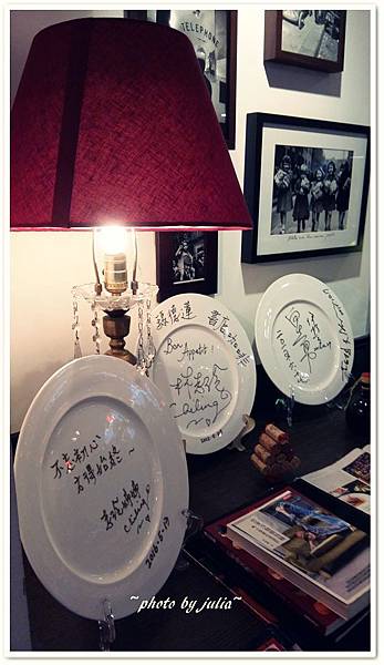 美麗的書桌一隅,陳列志玲姊姊及作家白先勇曾來此作客的簽名瓷盤。