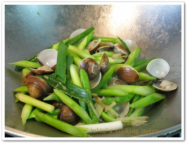 綠蘆筍400公克 蛤蠣300公克 蒜頭3瓣 青蔥1根